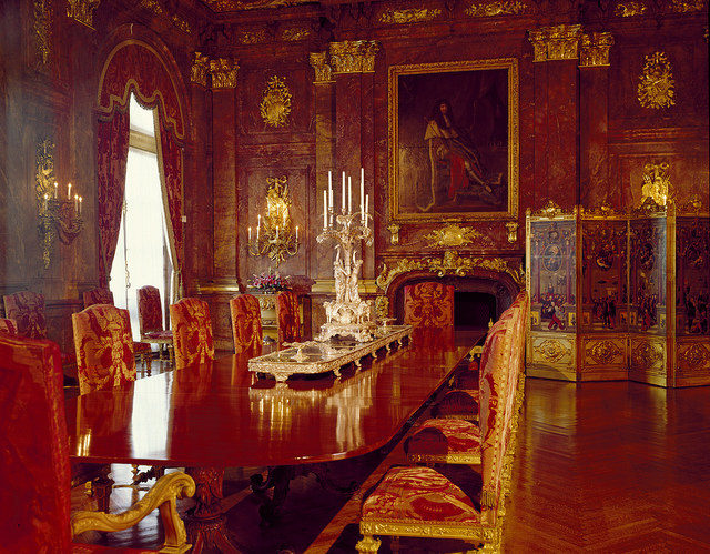 The library came out of a collaboration between Allard and Cuel, in the Rococo style. A must-see is the Harold S. Vanderbilt Memorial Room, which features yachting trophies and memorabilia. On the ceiling, there is a painting of Athena painted by Giovanni Antonio Pellegrini.