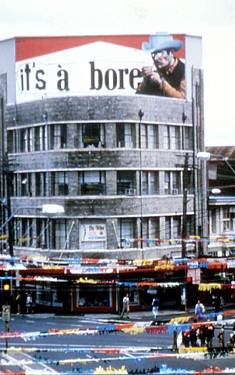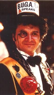 One of the most prominent members of the original BUGA UP movement was Rolo Mestman Tapier, known as “Lord Bloody Wog Rolo”, who joined the movement in 1981. He was known as an eccentric persona whose activism was often so radical that he was a target of police harassment throughout his life.