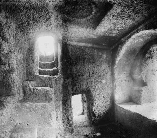 It was probably also the Nefesh or burial monument for the adjacent burial cave system known as the Cave of Jehoshaphat – an imposing rock-cut tomb behind Absalom’s Tomb, with eight finely hewn burial chambers. Most of the chambers contain rock-cut benches for placing sarcophagi or ossuaries.