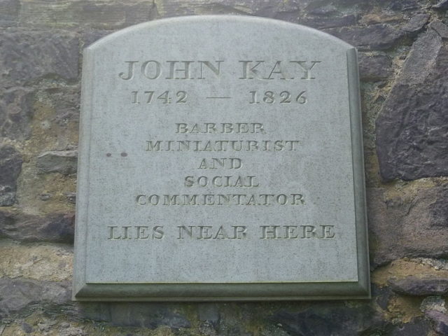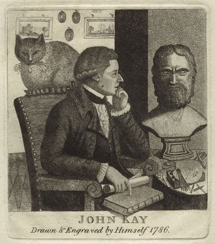 John Kay was born in Scotland in 1742, near Dalkeith, Midlothian, where his father was a mason. Kay was thirteen when he became an apprentice to a barber, with whom he stayed for seven years.