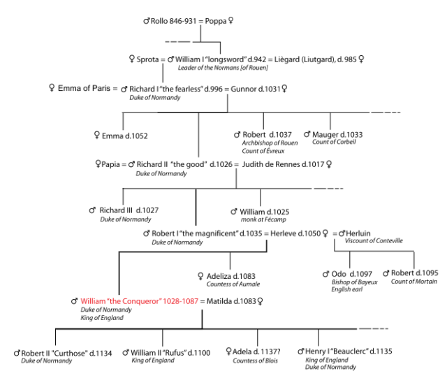Richard I, the Fearless, born 933, ruled Normandy from 942-996, married Hugh the Great’s daughter, Emma.