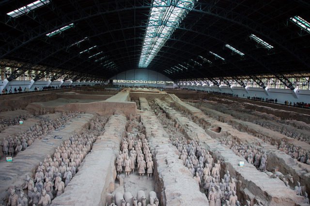 What these local farmers accidentally discovered dates to around 210 B.C. The 8,000 terracotta foot soldiers, archers, and charioteers had been buried with Qin Shihuangdi, the very first emperor of China.