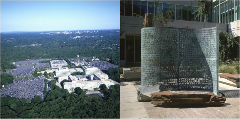 On November 3, 1990, CIA authorities revealed a new sculpture outside of the Agency’s cafeteria. The mysterious sculpture was named Kryptos (an ancient Greek word for “secret” or “hidden”), and it was created by Jim Sanborn, an American sculptor whose works mainly focus on topics such as magnetism, secret messages, and mysteries of atomic reactions.
