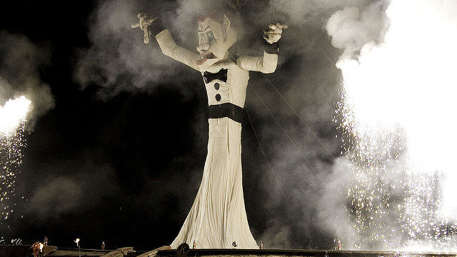 By burning this giant marionette, made of muslin and stuffed with hundreds of bags of shredded paper (which traditionally includes obsolete police reports, paid-off mortgages, and even divorce papers), people destroy the worries and troubles of the previous year in the flames.