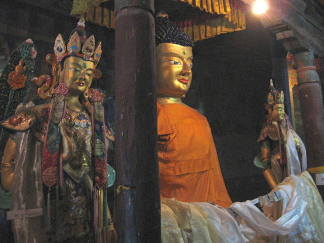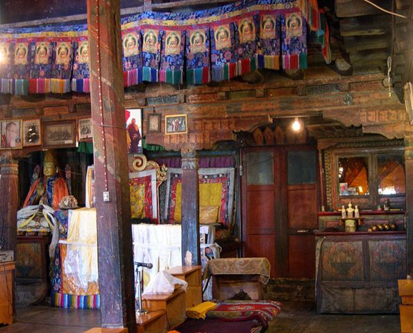 The top level of the monastery complex houses the Lamokhang temple, which stores numerous volumes of scriptures; only men are allowed entrance in these facilities. Big stupas and mani walls lurk at the entry and a small room above the temple is being used as a school room to teach some pupils chosen as lamas. The top floor also houses the official residence of the incarnate lama of the monastery. A large pillar engraved with the Buddha’s teachings is situated there as well.