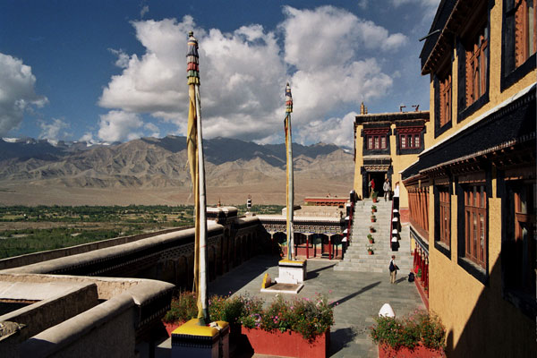The complex has a number of white-washed huts which house around 120 monks and nuns. Red and ocher are the other two colors that dominate the facades of complex buildings. For ages, Thikse has been a sacred Buddhist site, opening out to the astounding view of the Indus Valley.