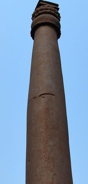 In the Qutb complex in Delhi, there is an astonishing structure that is thought to be over one thousand years old. It is a pillar that stands 7.2 meters tall measured from the top to the bottom of its base, of which 1.1 meters of it is underground.