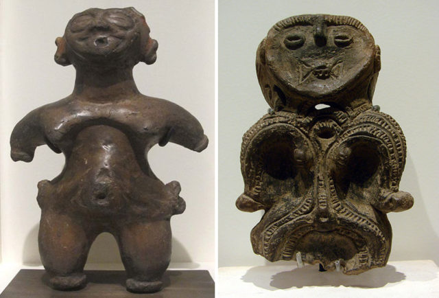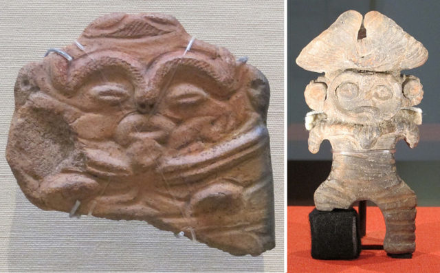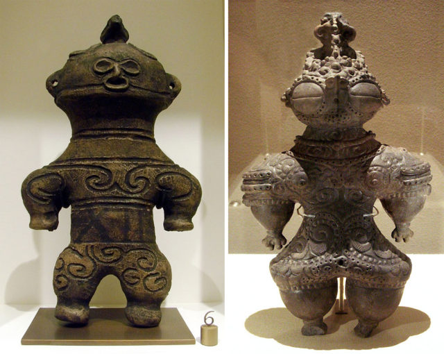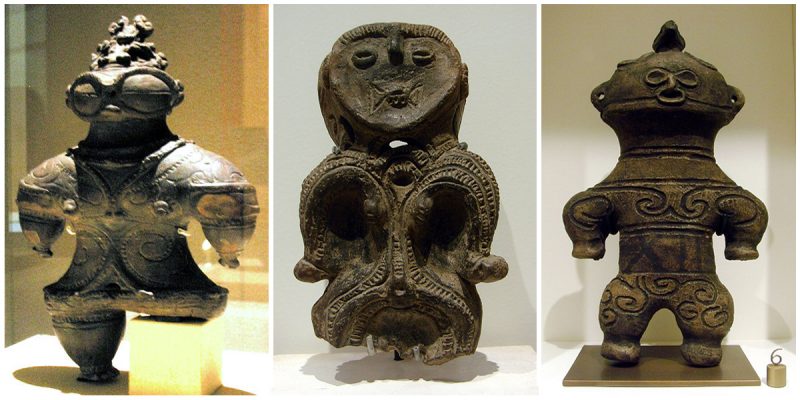 Some of the most fascinating pottery ever made in Japan dates back to the Jomon period (10,000 BC to 300 BC). One of the most significant aspects of Jomon culture are their dogu: richly decorated humanoid and animal figurines shaped in clay, which appeared as early as the Incipient Period, roughly 14,000-4,000 BCE, but were mostly produced in the Middle Period.