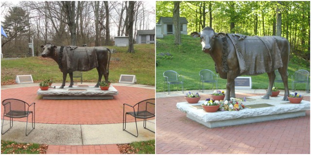 In Peace Abbey in Sherborn, Massachusetts, just between the statues of Mother Teresa and Mahatma Gandhi, there is a grave and a life-sized bronze statue of Emily the Cow.