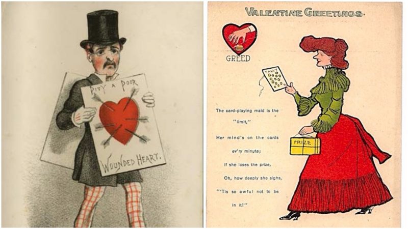 This practice of satirizing Valentine’s Day originated in the late Victorian era, with the emergence of the so-called “Vinegar Valentines”. In the early 19th century, the celebration of Valentine’s Day was a common thing among the upper classes of British society: many young people of the time already considered the practice obsolete, so they decided to send insult card instead of the usual greeting cards.