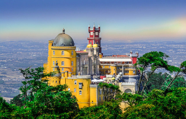 One of the most popular landmarks in Portugal is the Pena Palace, located in the Sintra hills. The palace was built in the 19th-century Romantic style of architecture and is one of the Seven Wonders of Portugal.
