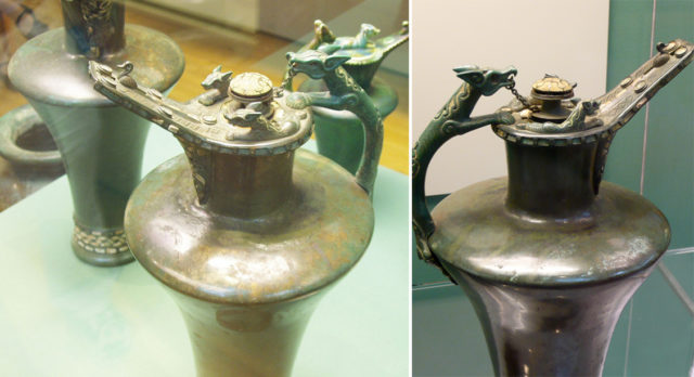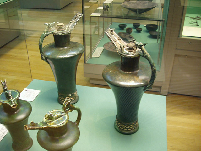 There is also a typical early La Tène palmette decoration under the spout (a popular Celtic motif), and a small duck ornaments the end of the spout. They are now celebrated as two of the most important and earliest pieces of Celtic art.