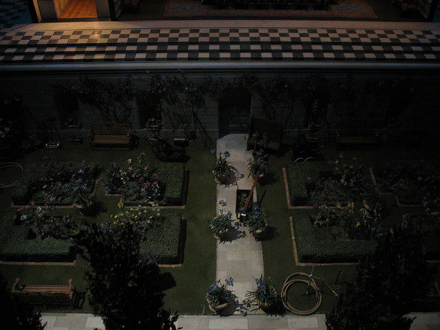 The house has electricity, working lifts, running water and flushing lavatories. There is also a fully stocked wine cellar with the appropriate wines and spirits and a garden designed by Gertrude Jekyll, a leading garden designer of the day. Beneath the main building, there is a secret garden that reveals itself when a vast drawer is pulled out. Each room is fully furnished and all of the objects are working copies of their real counterparts.