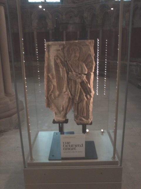 A sculpted panel of the Archangel Gabriel dating to the 8th century was discovered under the nave of the cathedral in February 2003. Originally part of a stone chest, the 600 mm panel is thought to have contained the relics of Bishop Chad.