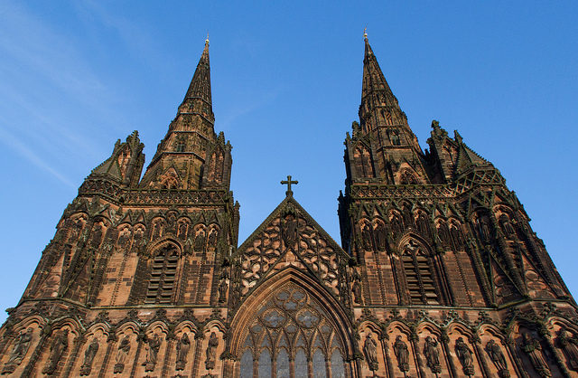 Situated in Lichfield, Staffordshire, the cathedral is the only medieval cathedral in England with three spires. Chad moved the focus of his diocese from Repton to Lichfield when he became Bishop of Mercia in 669.