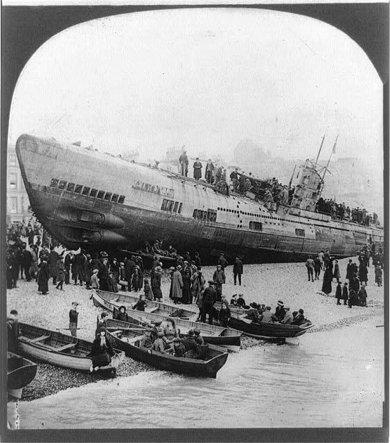 On February 23rd, 1919, the decision was made to take the U-boat to France to be broken up and used for scrap. Â In the early hours of April 15th, 1919, the dragging hawser broke off in a storm that came up while it was towed through the English Channel toward Naval Base Scapa Flow in Scotland. The submarine became adrift and later ran aground on the beach at Hastings in Sussex, not long after midnight, directly in front of the Queens Hotel.