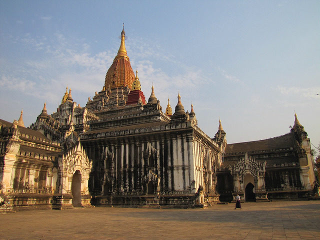 The Buddhist temple Ananda is one of the four main temples remaining in Bagan, Myanmar. It was built in the Pagan Dynasty during the reign of King Kyanzittha in 1105 AD. The inspiration for the temple originated from the tales of Indian monks.