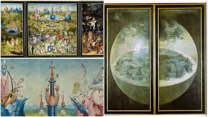 Many people are familiar with The Garden of Earthly Delights, but only a few are aware that the outer panels of the triptych can be closed to reveal another painting, one that was painted on the exterior side of the panels.