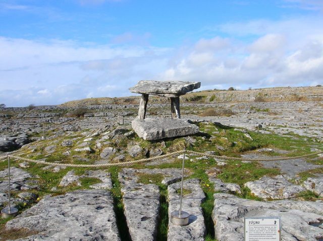 Some archaeologists suggest that the dolmen was a territory marker, erected by the inhabitants of large settlements to delimit the northern border near Kilnaboy. Others believe that in the Bronze Age, the tomb was probably a ritual place and location for ceremonies.