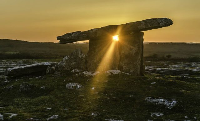 Poulnabrone dolmen is a portal tomb, and one of the most famous and oldest Irish dolmens. Located in The Burren National Park in Co. Clare, Poulnabrone is the most photographed of Ireland’s 174 dolmen tombs because of its unusual sculptured form.