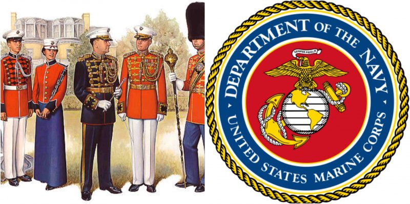 Of interest is the red stripe down the trouser leg of the marine uniform, known as the “blood stripe”. This is worn in memory of the Marines that died in the Battle of Chapultepec.