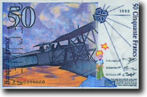 France adopted the euro as its currency in 2002, but Saint-Exupéry and the drawings from The Little Prince were on the 50-franc banknote before the French had adopted the euro.
