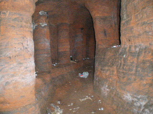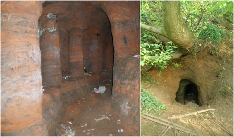 “This is an underground folly which has been cut out of sandstone as a temple. It is unknown when or why it was built but probably was created as a folly in the mid-19th century when it was considered fashionable. The landowners used to allow the public to explore the temple but the disrespectful behavior by visitors had finally made them seal up the entrance.”