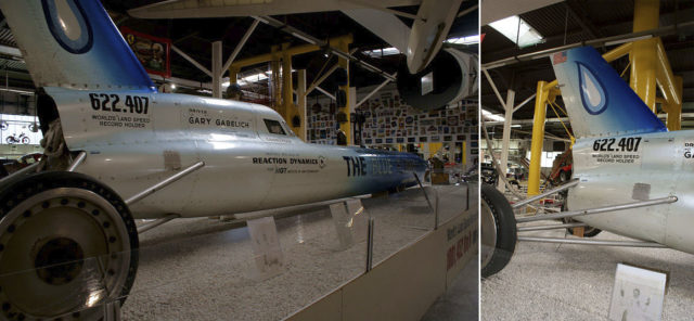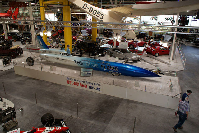 One of the greatest sensations at the Museum Sinsheim is the “The Blue Flame,“ a rocket-powered vehicle that achieved the world land speed record on Bonneville Salt Flats in Utah on October 23rd, 1970.