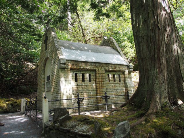It also houses the family mausoleum and has a Gothic cathedral. The mausoleum is a simple brick building and is the resting place of Margaret Henry, Mitchell Henry, and a great grand-nephew. The Gothic cathedral was completed in 1881 and is located on the left-hand side of the avenue before the Mausoleum.