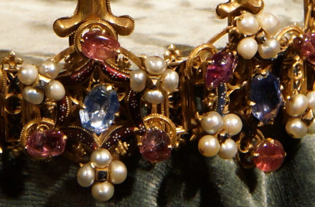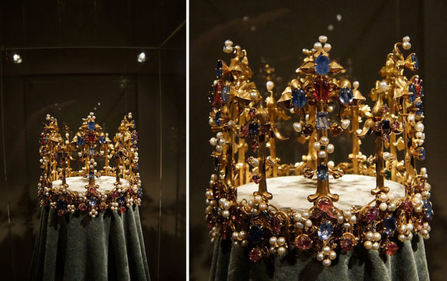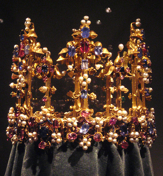 Made of gold with enamel, sapphires, rubies, emeralds, diamonds, and pearls, the Crown of Princess Blanche, also called the Palatine Crown or Bohemian Crown, is the oldest surviving royal crown known to have been in England, and probably dates to the years after 1370.