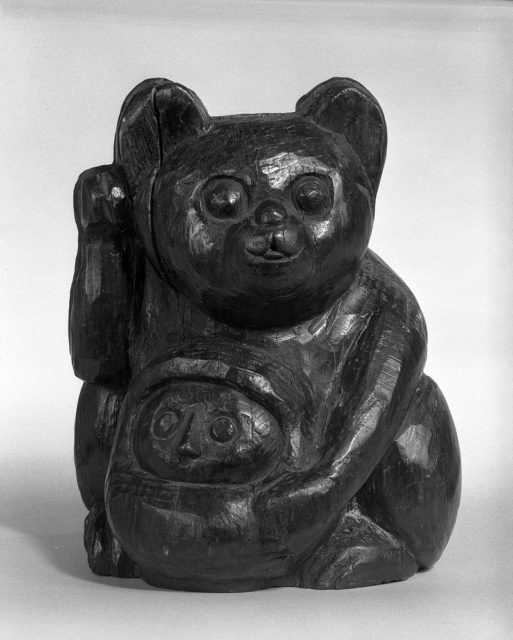 Many “amusement houses” were filled with lucky charms which were in the shape of the male sexual organ. But with the opening of Japan to the West during the Meiji Restoration, the sale of these charms was banned by the government. During this period, the use of the Maneki-Neko increased.