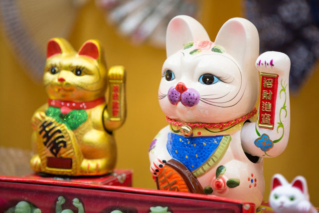 The Maneki-Neko is a Japanese lucky charm which is very popular in Japanese and Chinese culture.