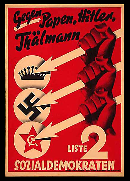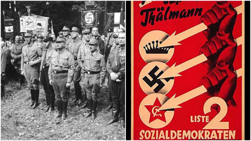 In December of 1931, members of the German Social Democratic Party formed a paramilitary organization known as “the Iron Front.” The organization was initially meant to counter the militant right-wing Harzburg Front, a violent organization founded by the German National Socialist Workers Party. They later expanded their agenda to include fighting communism and monarchism.