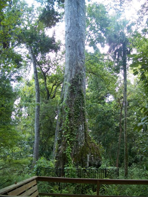 The swamp in the Big Tree Park is home to one other of these magnificent trees. Only 13 yards away from where The Senator stood, there’s another old bald cypress. This one is called Lady Liberty Tree, and it is 2000 years old, with a height of 88 ft ( 27 m).