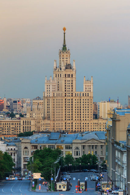 The “Kotelnicheskaya Embankment Building” is 176 meters high, and it has 22 usable floors. It is built at the point where the Moskva River and Yauza River meet.