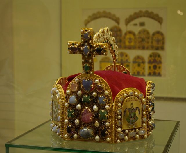 Four years later, the crown was taken to Vienna. It is now preserved and exhibited in the national treasury in Vienna “until another Holy Roman Emperor of the German Nation.”