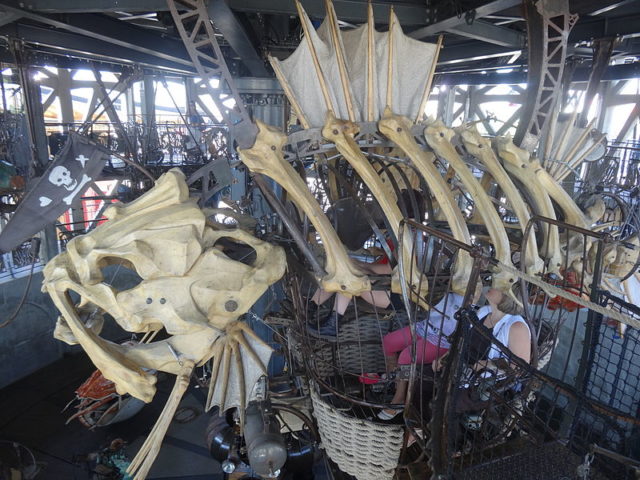 Located in the city’s former shipyard, it is a whole park of steam-powered machinery, ranging from a giant elephant trough flying herons, a mechanical dragon, a carousel revolving with deep sea creatures to two-meter long centipede crawling on a rail track.
