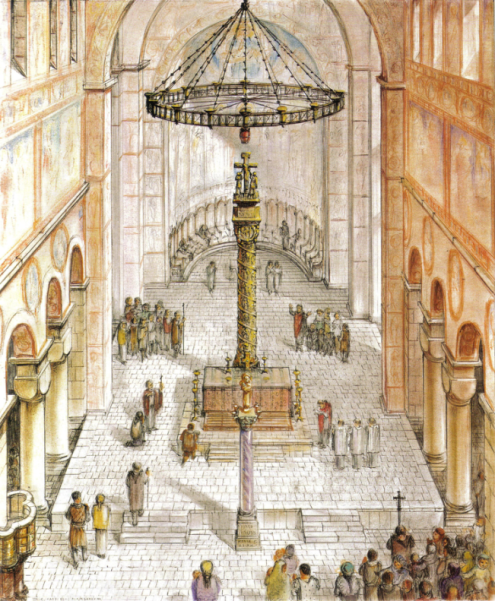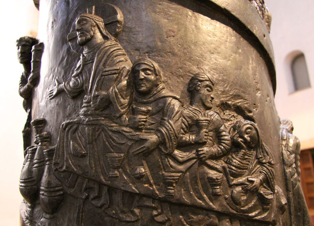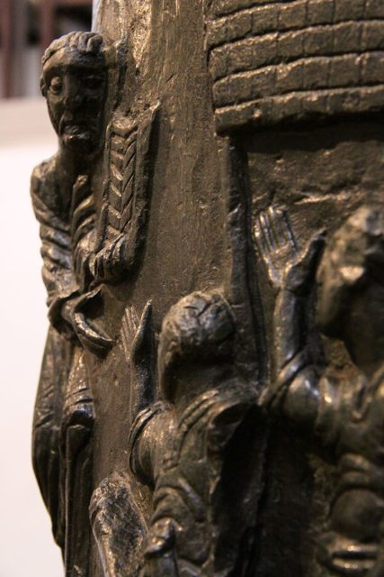 This masterpiece of Ottonian art and bronze-casting depicts 24 scenes taken from Christ’s life arranged in a helix. The story starts with Christ’s baptism in the Jordan River (illustrated at the bottom) and ends with his Triumphal Entry into the city of Jerusalem, depicted at the top of the column. The column is 12.4 ft high and 23 inches in diameter and similar to that of the Roman Emperor Trajan that still stands in Rome and commemorates his victory in the Dacian Wars.