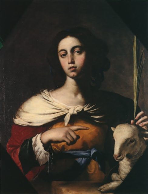 Phocus, the son of a Roman prefect called Sempronius, told his father about her faith. Sempronius questioned her, and she publicly admitted that she was following Christianity, and after she had refused to offer a sacrifice to the temple of the goddess Vesta, she was arrested, stripped naked and dragged to a brothel. The legend says that while she was dragged naked through the streets, her hair miraculously grew and covered her body. The miracles didn’t stop. At the brothel, her faith protected her, and she managed to stay a virgin. After hearing about this, the authorities condemned her as a witch and decided to burn her at stake. However, when they tried to light the bundles of wood, they wouldn’t burn; then, one of the soldiers drew his sword and stabbed her in the throat. Saint Agnes became the patron saint of chastity, girls, engaged couples, rape survivors, and virgins.