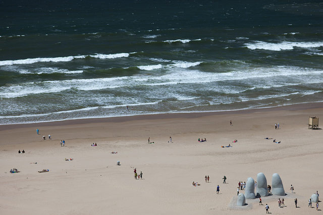 Another hand, the right one, resides in the Atlantic coastal resort of Punta del Este, 1,200 miles east of Antofagasta, a creation by the same artist, named “Man Emerging to Life,” commonly known as the “Monument to the Drowned.”