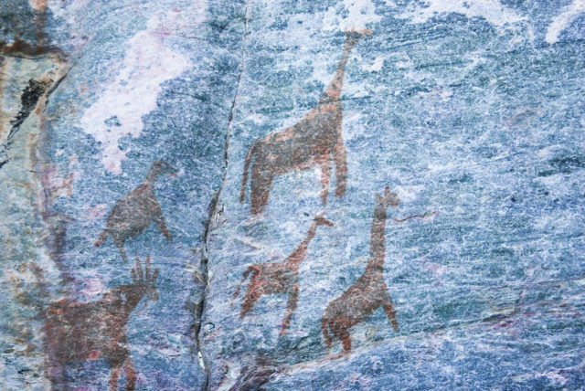 Some of the paintings were made by the San People, also known as Basarwa or Bushmen, but it is believed that most of them were made by the Khoi people and the Hambakursh, Bantu immigrants who arrived on the site 1, 800 years ago. According to UNESCO, some of the paintings are 24, 000 years old. They are almost 7, 000 years older than the Lascaux paintings in France.