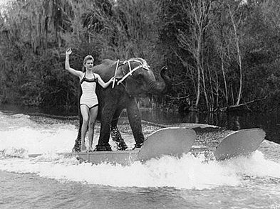 Queenie and Elisabeth bonded and became an attraction for the public. Knowing how to amuse their audience by water skiing, playing the harmonica and even dancing, the team gained fame and were presented by state and country fairs, TV shows, and circuses around the country.