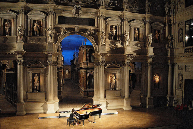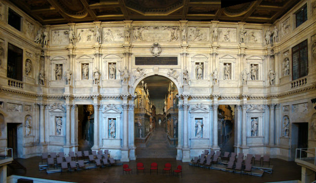It served as a filming location for the movies Don Giovanni from 1979 and Casanova from 2005. The first theater which was inspired by Teatro Olimpico is the Teatro all’antica in Sabbioneta which was also designed by Vincenzo Scamozzi.