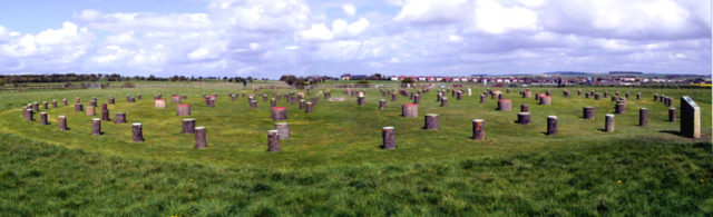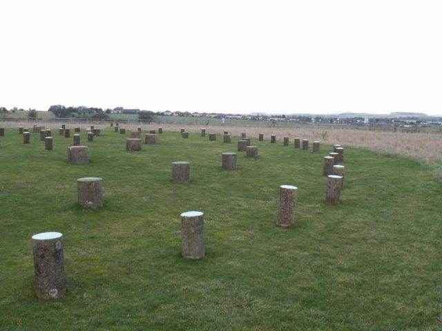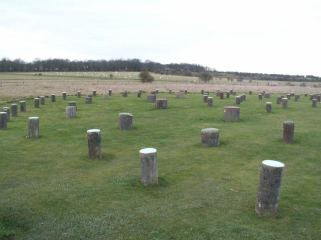 There are 168 post holes, and most of them held wooden posts, although now they are marked by modern concrete blocks to show their size and position. Cunnington claimed that she had found evidence of a pair of standing stones that were placed between the second and third post hole rings and excavations in the 2000s indeed showed that there were at least five standing stones on the site.
