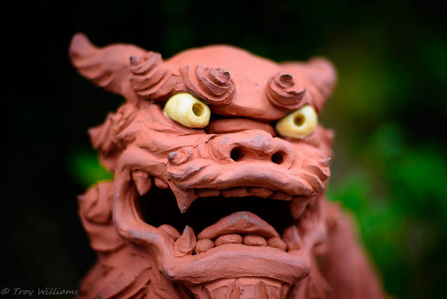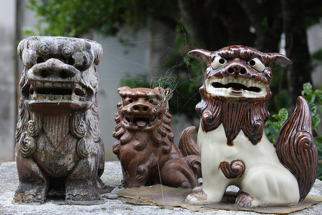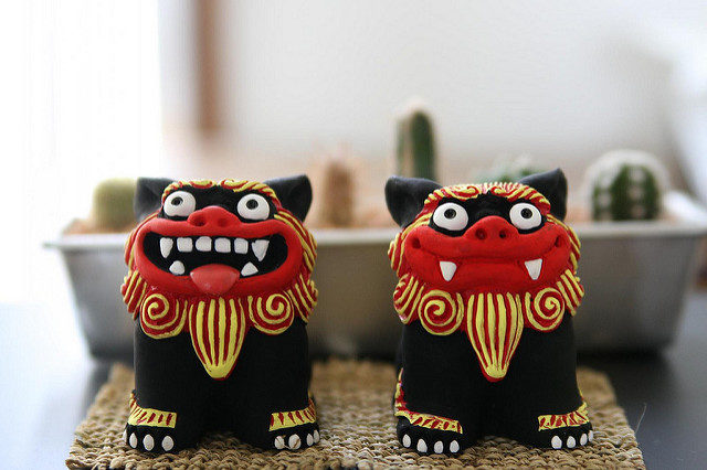 These statues came from the Okinawan mythology, and they are also known as gargoyles. The Shisa statues are used as protection from evil spirits. Also known as shi-shi, these statues can be seen on top of roofs and in front of houses. It is impossible for tourists to miss them when they are visiting the Okinawa islands. There are always two Shisa statues, a male, and a female. The female, which has a closed mouth, is keeping the good spirits, while the male, which has an open mouth, is chasing away the evil spirits.