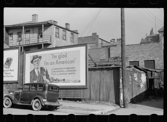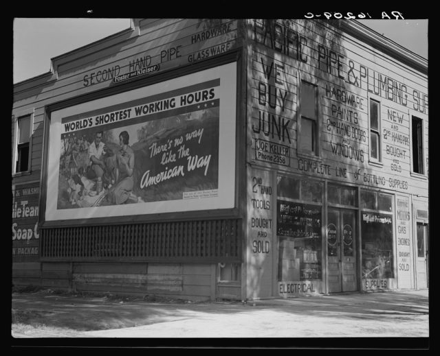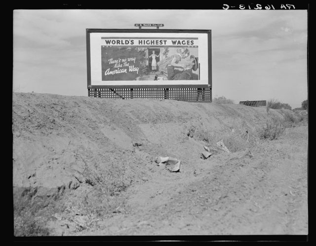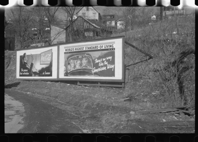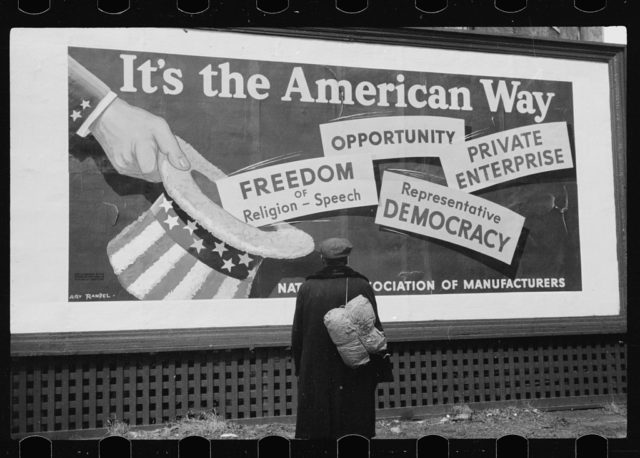 It was at this point when thousands of billboards promoting the benefits of capitalism were erected across the country by the National Association of Manufacturers. One of the best-known was the billboard “There is no way like the American way,” created by Arthur Rothstein in 1937.