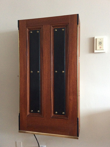 The Studley Tool Chest was designed to be hung on a wall, but that was a difficult task because there are nearly 300 tools and it is said that it takes three men to lift it on the wall. The Studley Tool Chest holds numerous manufactured tools, but there are also many tools which Studley himself made, including rosewood, brass, and ebony marking gauges.