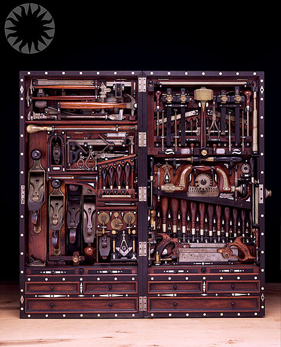 One such toolbox is the Studley Tool Chest.At one point, this vintage, 19th-century tool chest was displayed in the Smithsonian, and there is a good reason why. Designed by the organ and piano maker, master carpenter and mason, Henry O. Studley, this impressive toolbox which is 19 1/2 inches wide, 39 inches long and 9 1/2 inches deep, holds nearly 300 tools and weighs 72 lbs when empty or 156 lbs with tools inside it.