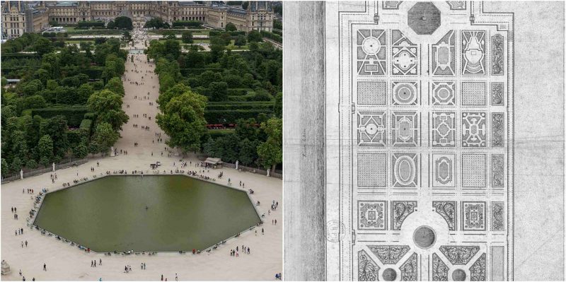 In the 17th century, King Louis XIV moved into the Tuileries Palace while he waited for the Palace of Versailles to be finished. In 1664, displeased with the garden’s Italian appearance, he commissioned the landscape architect André Le Nôtre to redesign the entire garden into a French formal garden, based on symmetry and order. The gardens had a central lane, 2 ponds, and 2 lateral terraces. The garden has remained largely unchanged since this time.