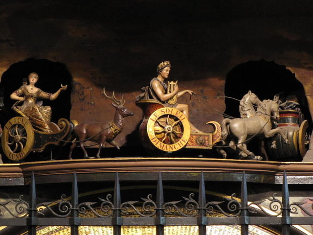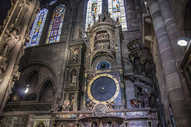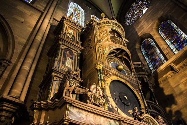 Located in the Strasbourg Cathedral, France, the historic Strasbourg astronomical clock is a Renaissance masterpiece assembled by various artists, mathematicians, and technicians, and it is considered as one of the largest in the world.
